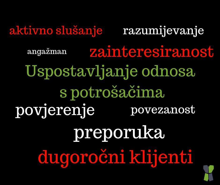 Kada postignete da ljudi pričaju o vama, preporučuju vas prijateljima – otvorili ste škrinju s blagom. Klijenti se žele osjećati posebno i važno, jer budimo iskreni – rijetko kad se tako osjećamo zar ne? Rijetko kad se dogodi da klijenti kupuju proizvod samo zbog njegovih rezultata, ocjena i sl. Uvijek se pitaju – što će to učiniti za mene, ili što će mi taj proizvod donijeti, dati?